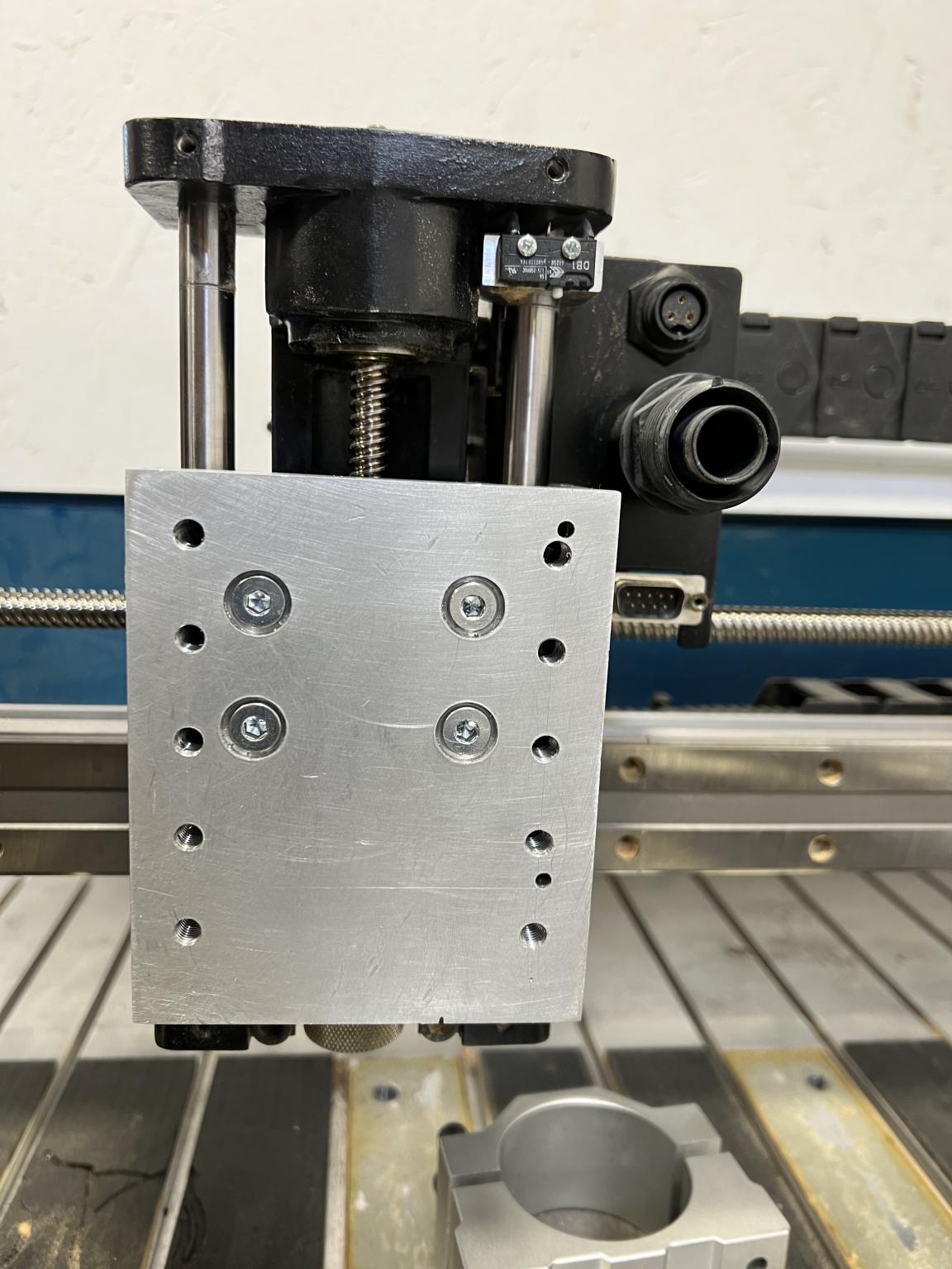 Thought I'd post a couple of pics vids about adapting the Surecraft to accept a 500w Air cooled spindle. I had to 'mill' a block of Aluminium - without a mill. I managed to cut it with a metal blade in my table saw (very sketchy!) then alot of sanding, drilling and tapping!