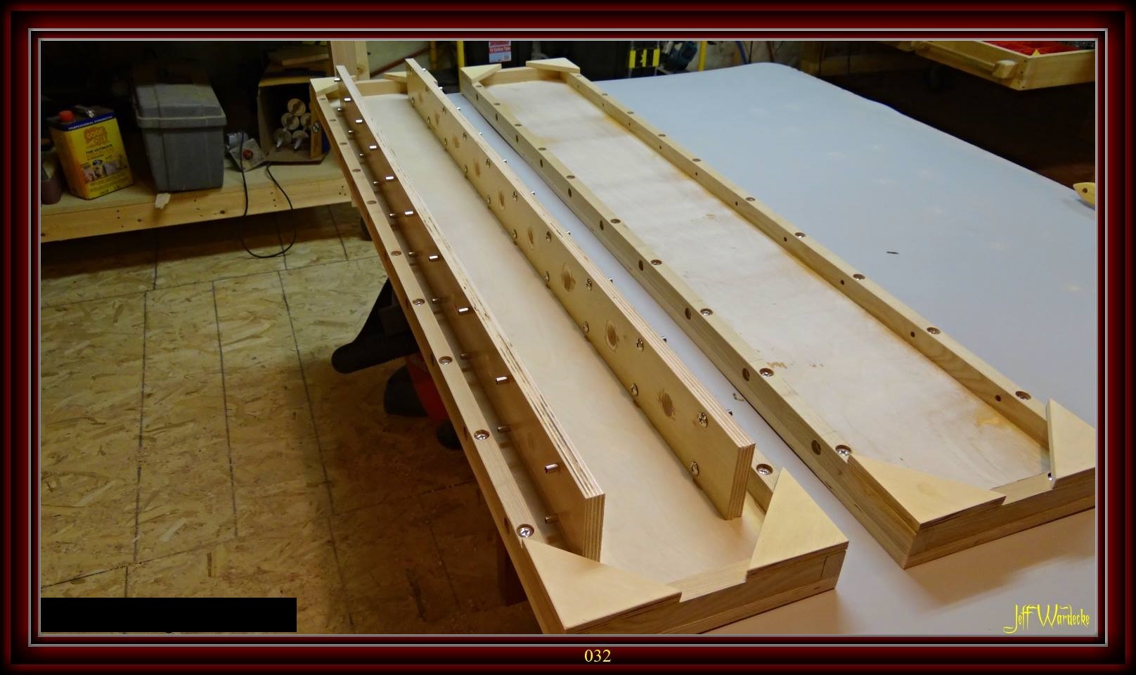 Finished the duct holes, glued and screwed down plus added 1×2’s the the main supports to flush em up with the oak plywood banding and leaving a channel to run wires for stepper motors limit switches and lights in the top.