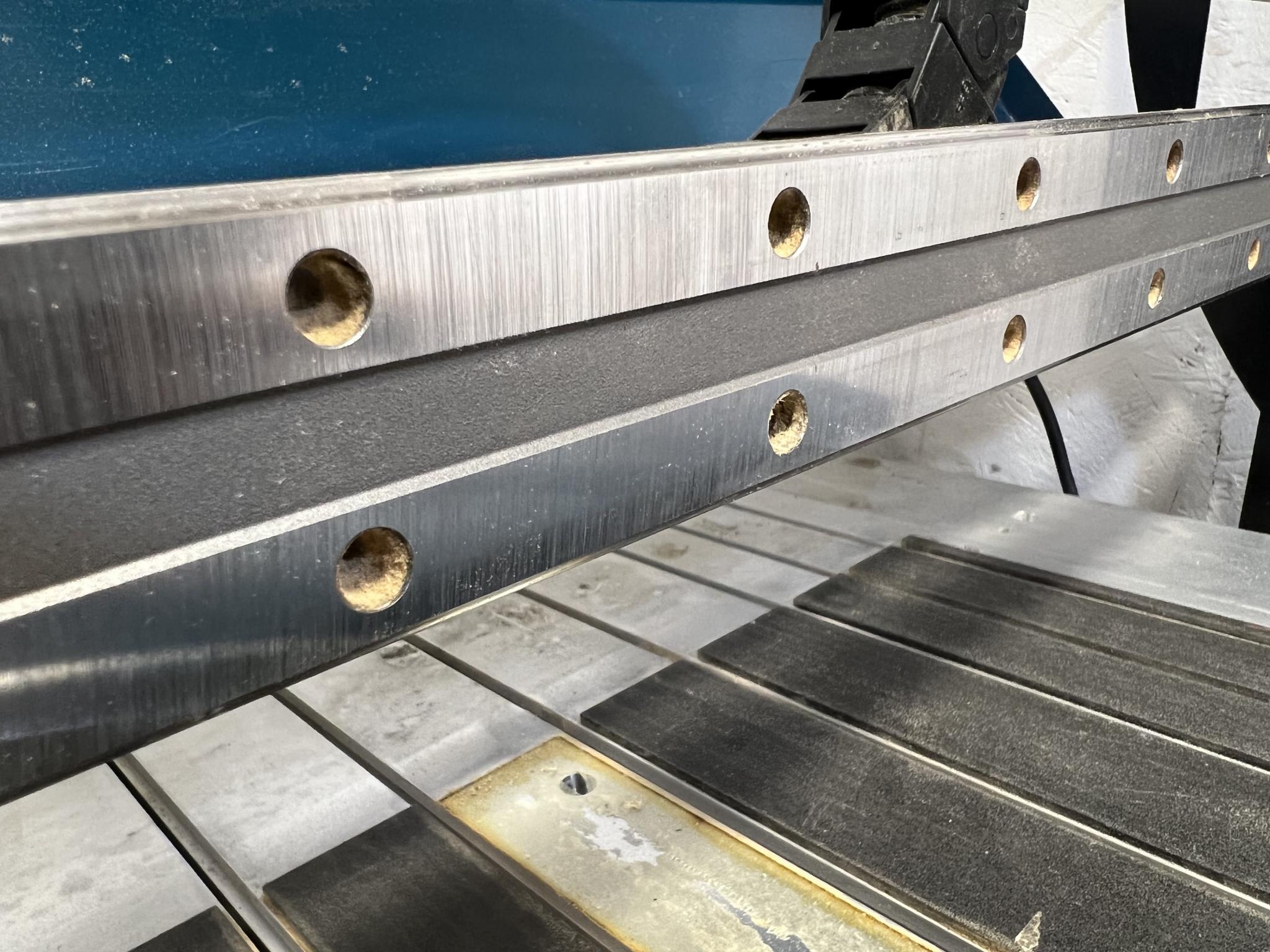 Looking at the strength of the X axis. I agree that the axis looks weak, there is nothing support the linear rail against any deflection. I have had an idea to strengthen it up. I'm going to get a length of 28mm square steel tube. My plan will be to bolt this to the back of the linear rail and tie it back into the gantry supports (which are ironically very well built). I'll have to cut a little bit of the thin black plate away t(but this is just cosmetic) to allow the tube and linear rail to bolt into the supports. In one of the attached photos I'm holding a piece of section to give you an idea. Would like to know what you think?