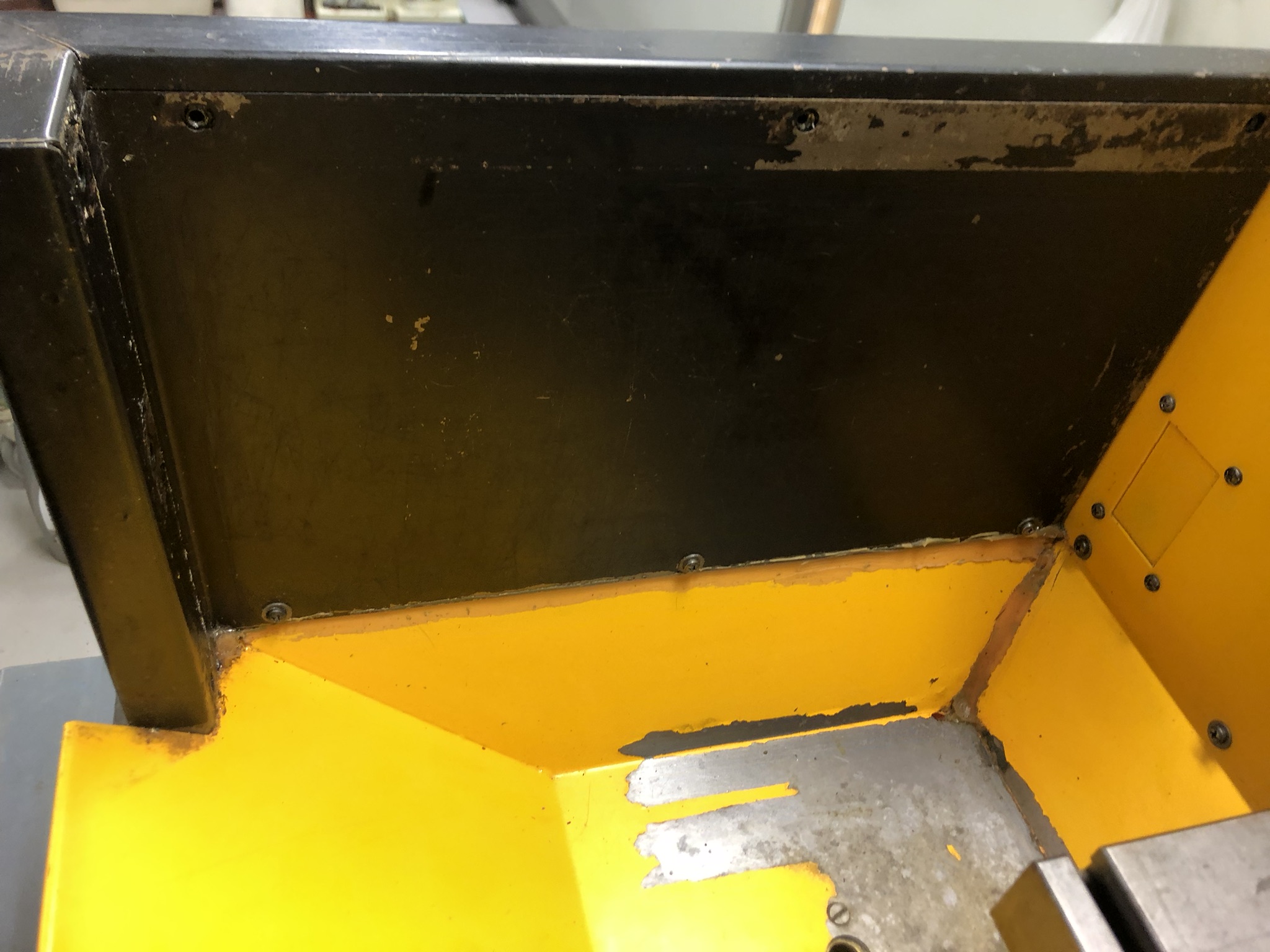 I started to clean up the machine a bit and removing the right hand side of the enclosure. First, the inside sheet metal needs to be removed which gives access to the nuts holding the side panel in place.
