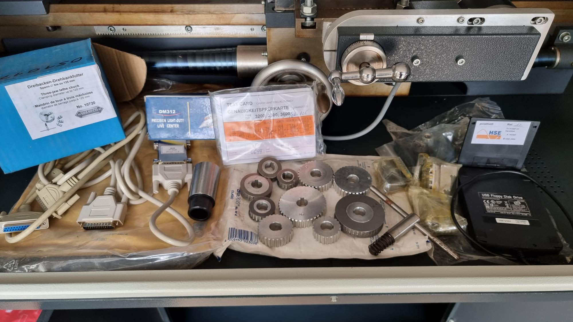 Dongle for PC Dreh cnc software and serial port leads. USB Floppy disc drive.