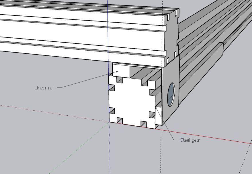 I need to create more space between the gantry and the bed as it's difficult to fit vacuum extraction or a bigger spindle, here is option for this in my drawing, does it work this way, or linear bearing has to be flat on top?