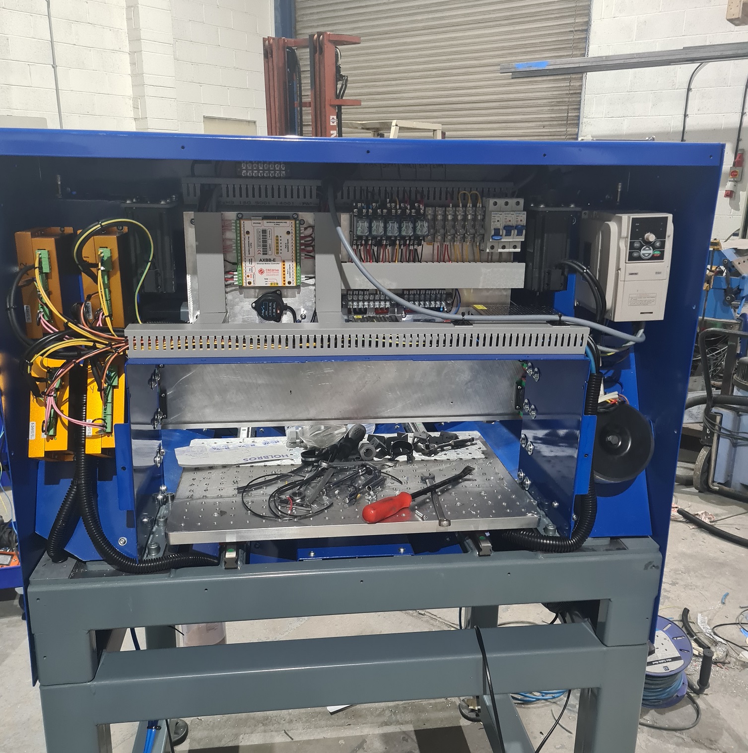 Any chance of a peak in the control cabinet? Not sure I saw a door so if it's an effort to remove covers etc. (or not tidy yet!) then no problem.