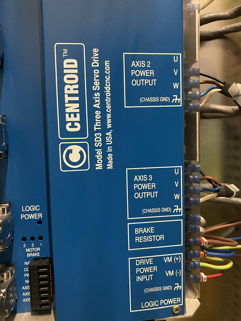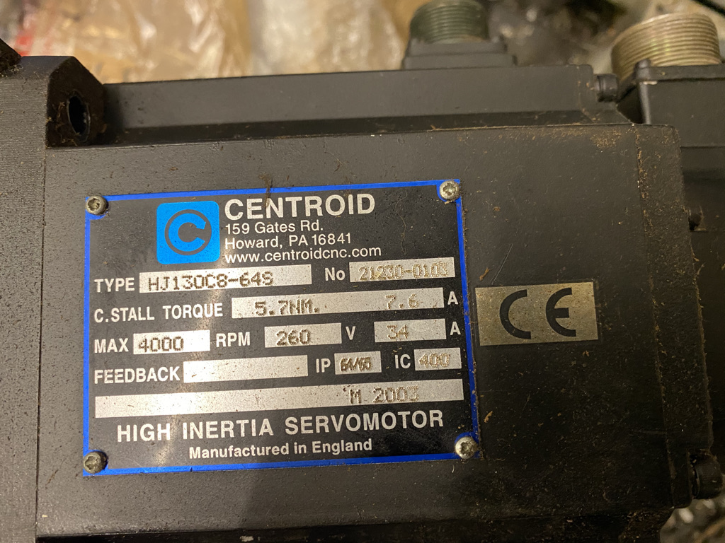 I have 3 centroid (sem) ac brushless servo's that came with it . originally controlled by the centroid sd3 servo drive rtk3 and centroid m400 control with cnc10 software