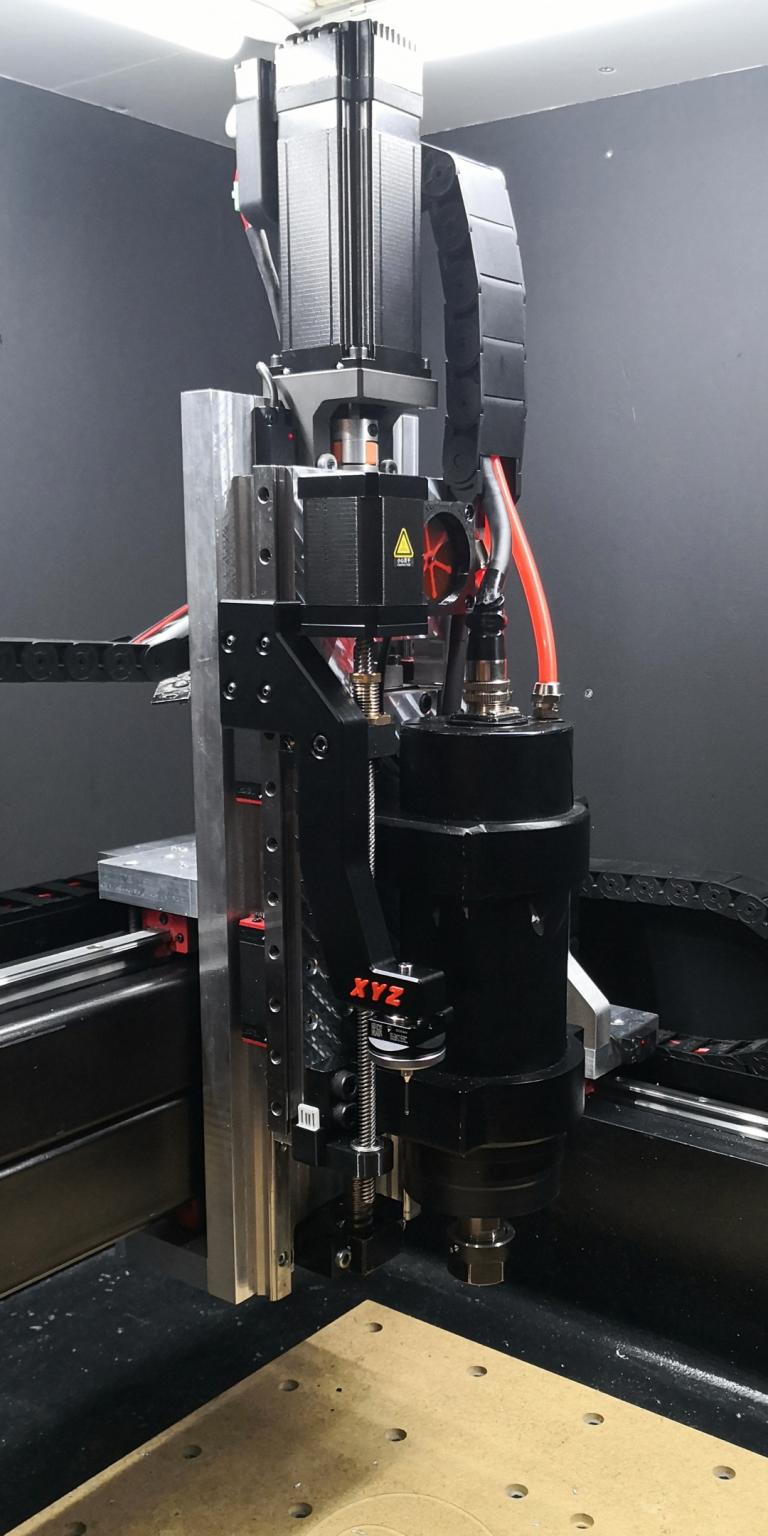 Nice!, it will be interesting to find out if you run into any sensitivity issues when you run a probing command, I know someone who has done a similar setup but using a linear actuator rather than a motor, the stop/start forces as gentle as they are, cause his specific (similar style) probe to detect the movements as tip indications/false contacts with the part as the probe moves down ready to be used.