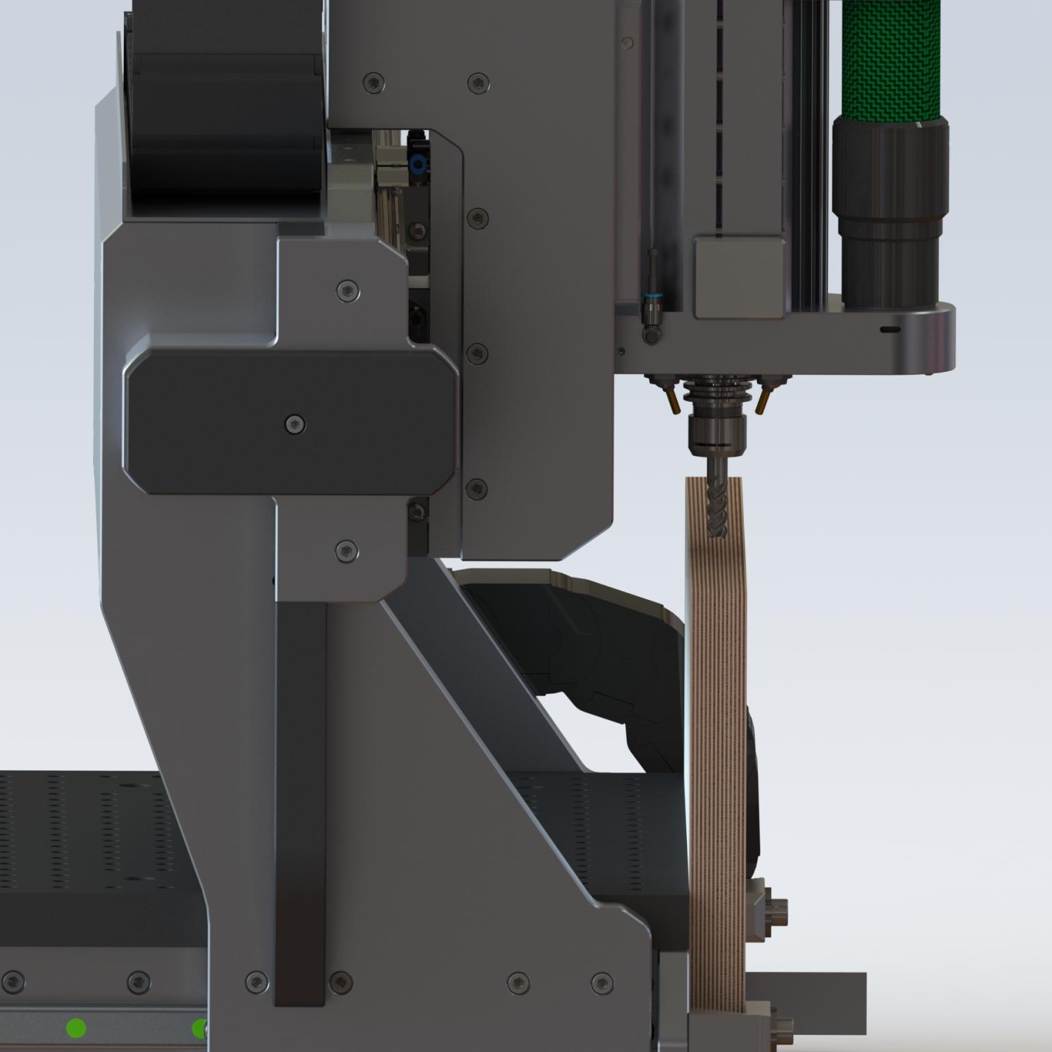 My first idea was to incorporate an automatically height adjustable dust shoe (Marius Hornberger style). But that design would have consumed too much Y-travel. Therefore, I currently plan to use a conventional system...