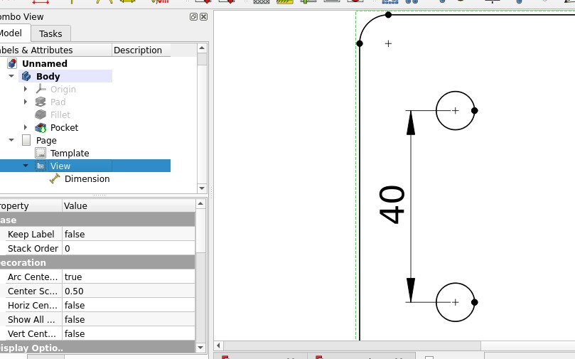 So, not unfamiliar with CAD concepts. But have found FreeCAD, although powerful, has its own unique protocols for commands; some intuitive but many not so. My issue: to get to the nitty gritty, is vertices/constraints in the 2D Techdraw workbench. Have modelled a number of simple flanges: plates with a vertical web - tranvesrse and longitudinally - inserting the views is executed well and I am able to dimension all the profiles without any issues. However, when it comes to setting a dimension to position the holes in the flange-plate relative to the outer edges the hole centre (vertices) is “glued to the edge of the hole and not at the hole’s geometric centre. Videos, demonstrating dimensioning hole positions, use the displayed vertices which, in their examples, is at the epicentre of the holes. What might be the reason for this not being so in my 2D drawings? The sketch for the flange plate is “fully constrained”.