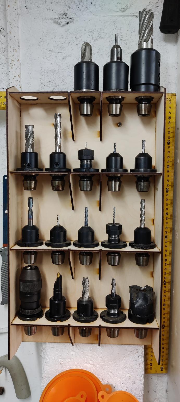 - Selection of around 30 spare end mills/slot drills from 1mm to 16mm diameter.