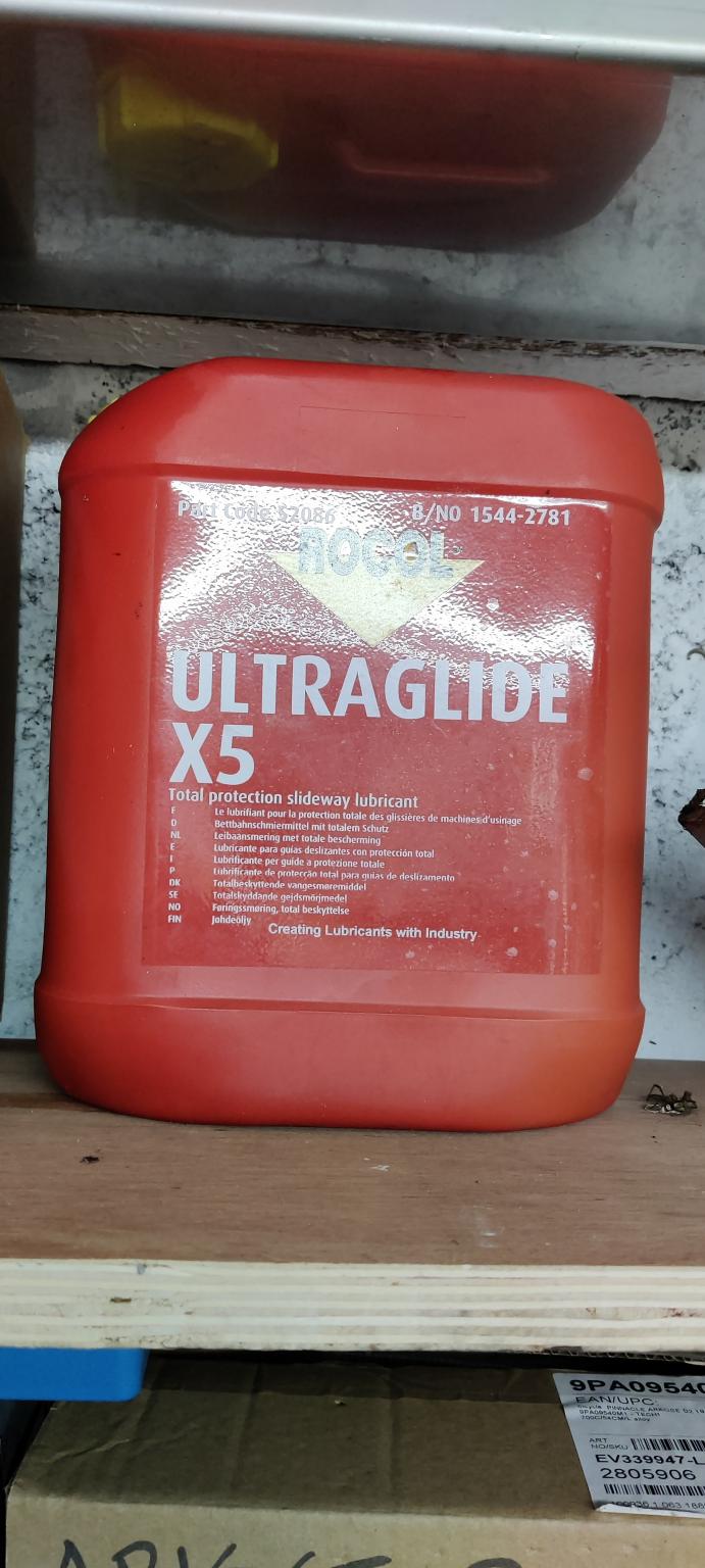 - Remaining slide way oil [Ultraglide X5] and coolant [Hysol Excel]