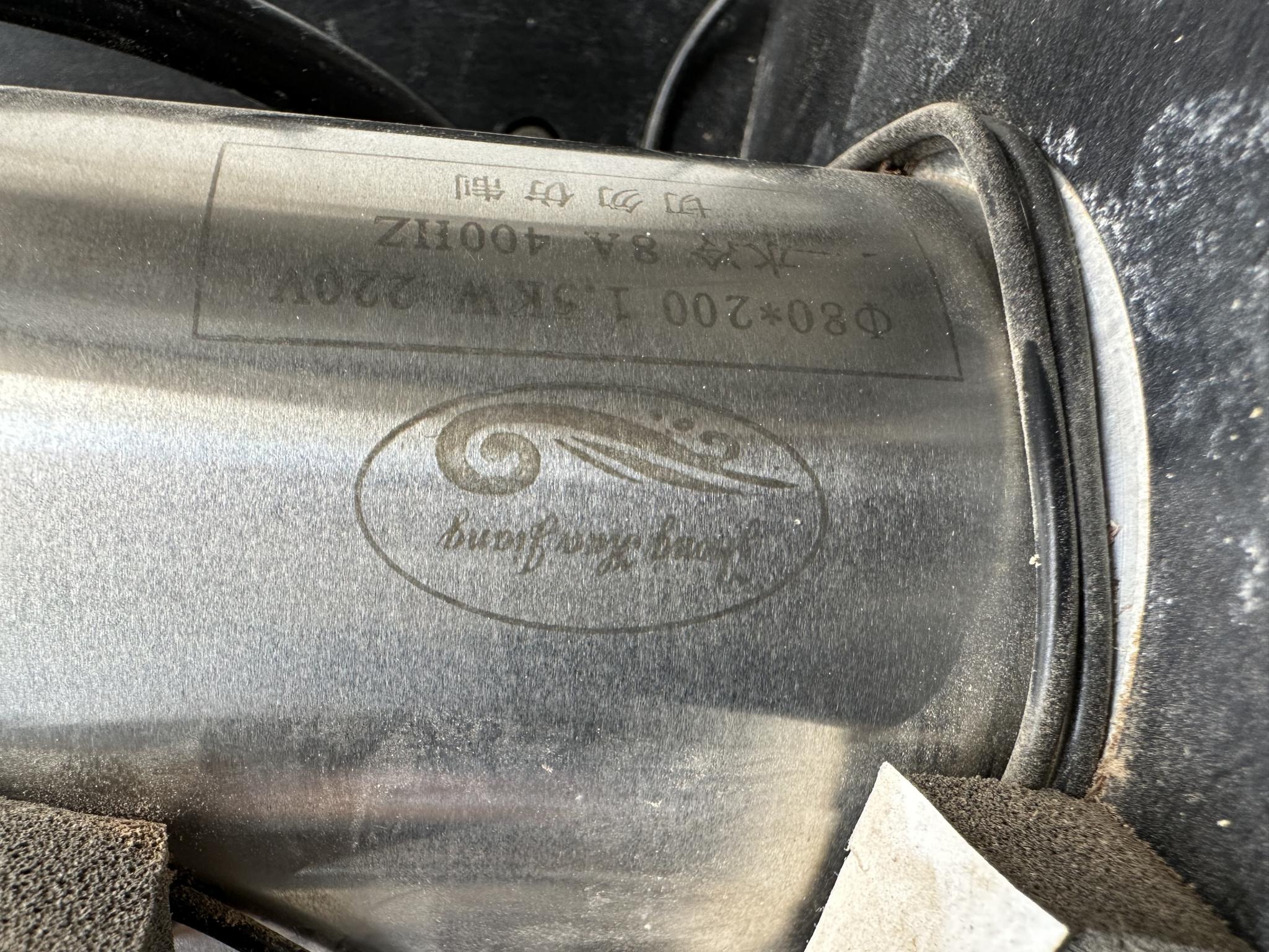 Spec of the spindle as far as I can see is: 80mm x 200mm, 1.5Kw, 220v, 8A, 400Hz, water cooled.