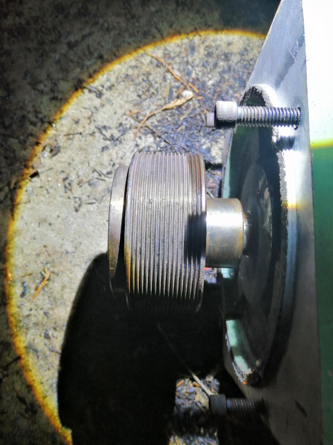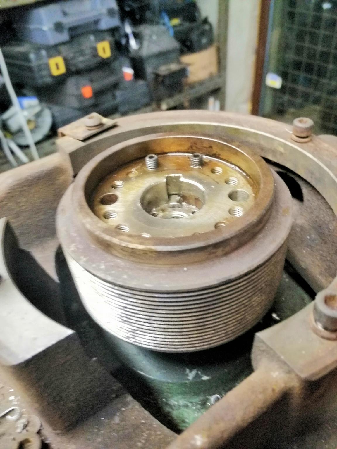 Hi, has anyone any experience with this spindle motor pulley on my Bridgeport Interact 1 series 2. I am changing the motor but wanted to reuse the pulley. I can get a 3 leg puller onto it but even with heat and a ton of force it only moved 1/8 of an inch and is now locked solid. It has two grub screws on the top (pic) which I have unscrews but wondered are you supposed to remove this type with an hydraulic feed contected to these two grub screw holes?