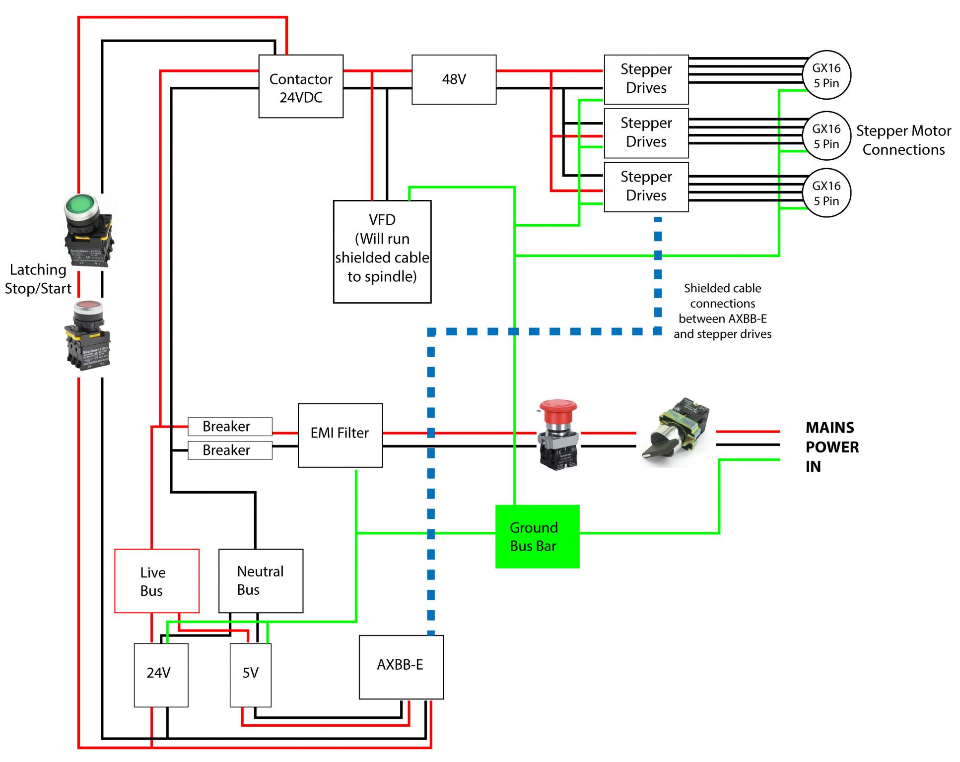 Upgrading my OMIO X4 machine to an AXBB-E controller and new enclosure. I'm a novice and have tried to learn as much as possible in order to take on this upgrade project. This is my planned basic wiring setup, would appreciate any feedback