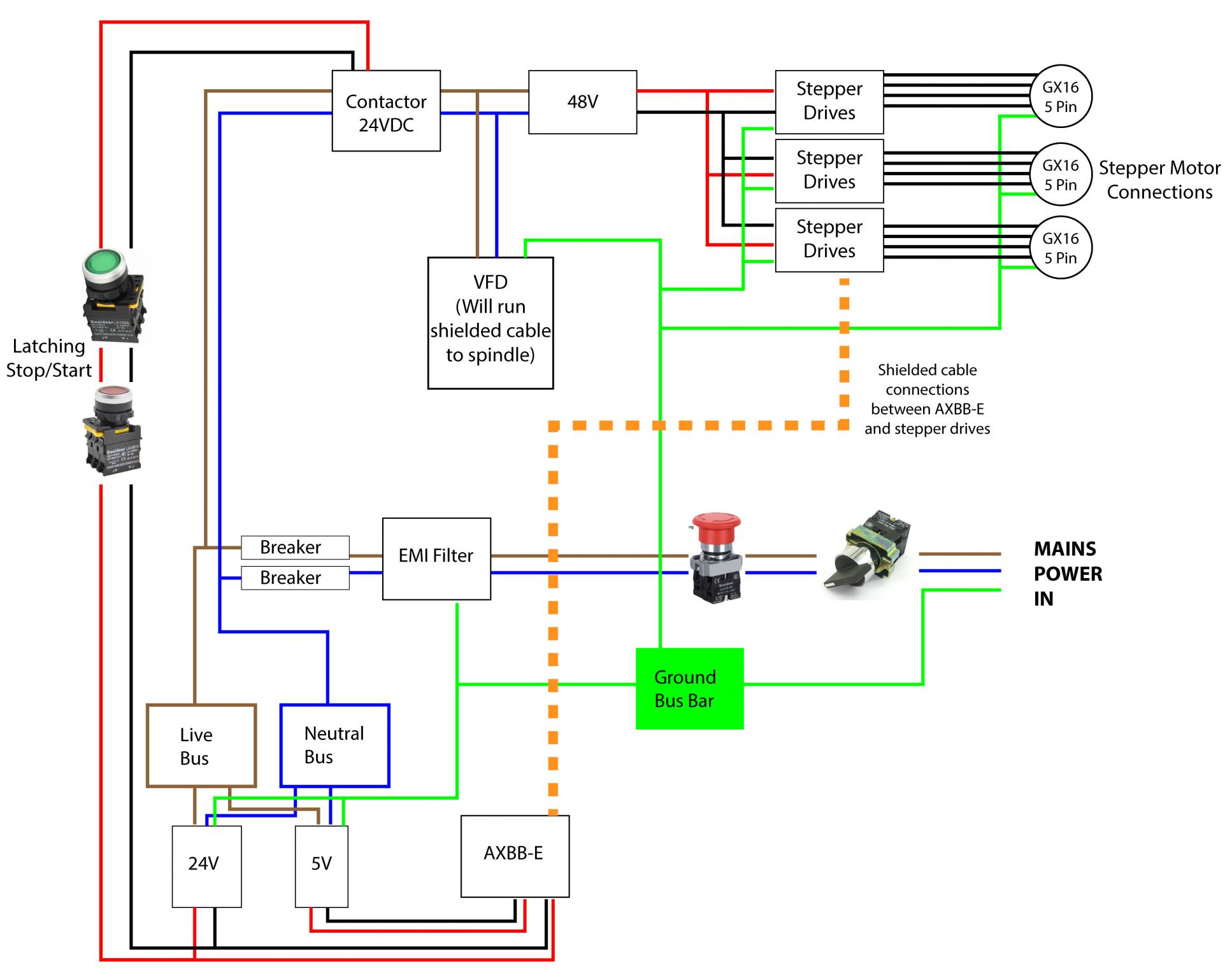 Upgrading my OMIO X4 machine to an AXBB-E controller and new enclosure. I'm a novice and have tried to learn as much as possible in order to take on this upgrade project. This is my planned basic wiring setup, would appreciate any feedback