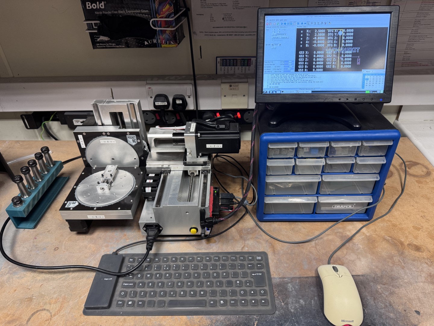 Coming with 6 tool holders, tools, screen, keyboard, mouse and storage cube.