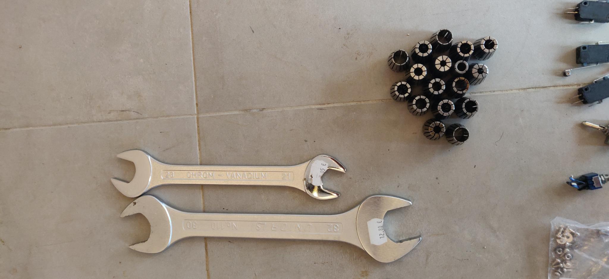 - a bunch of carbide end mills (2-6mm, 6mm x 32mmn, shaving, ball, carving...)