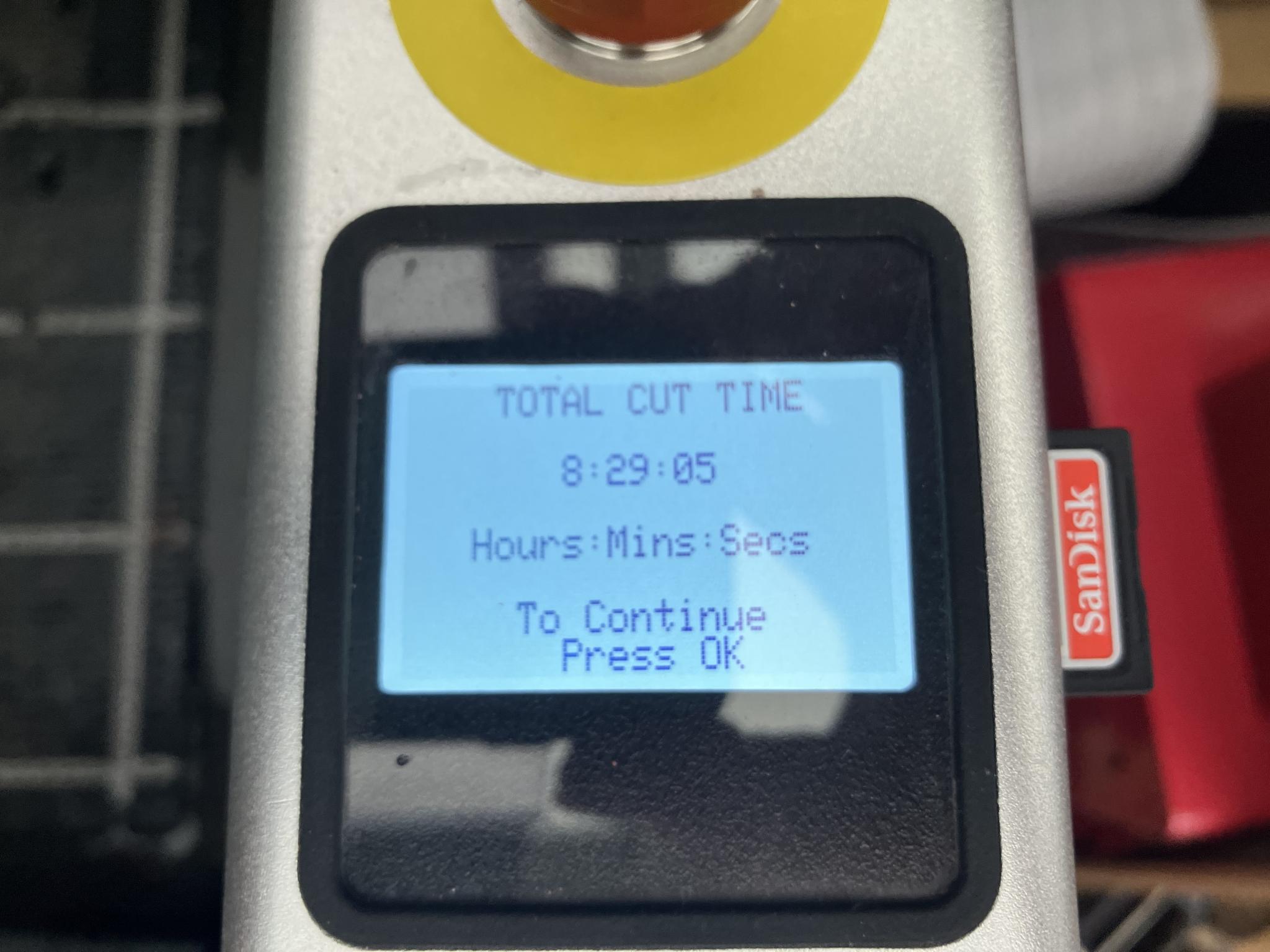 eight and a half hours of cutting. Im selling this machine as I'm relocating overseas.
