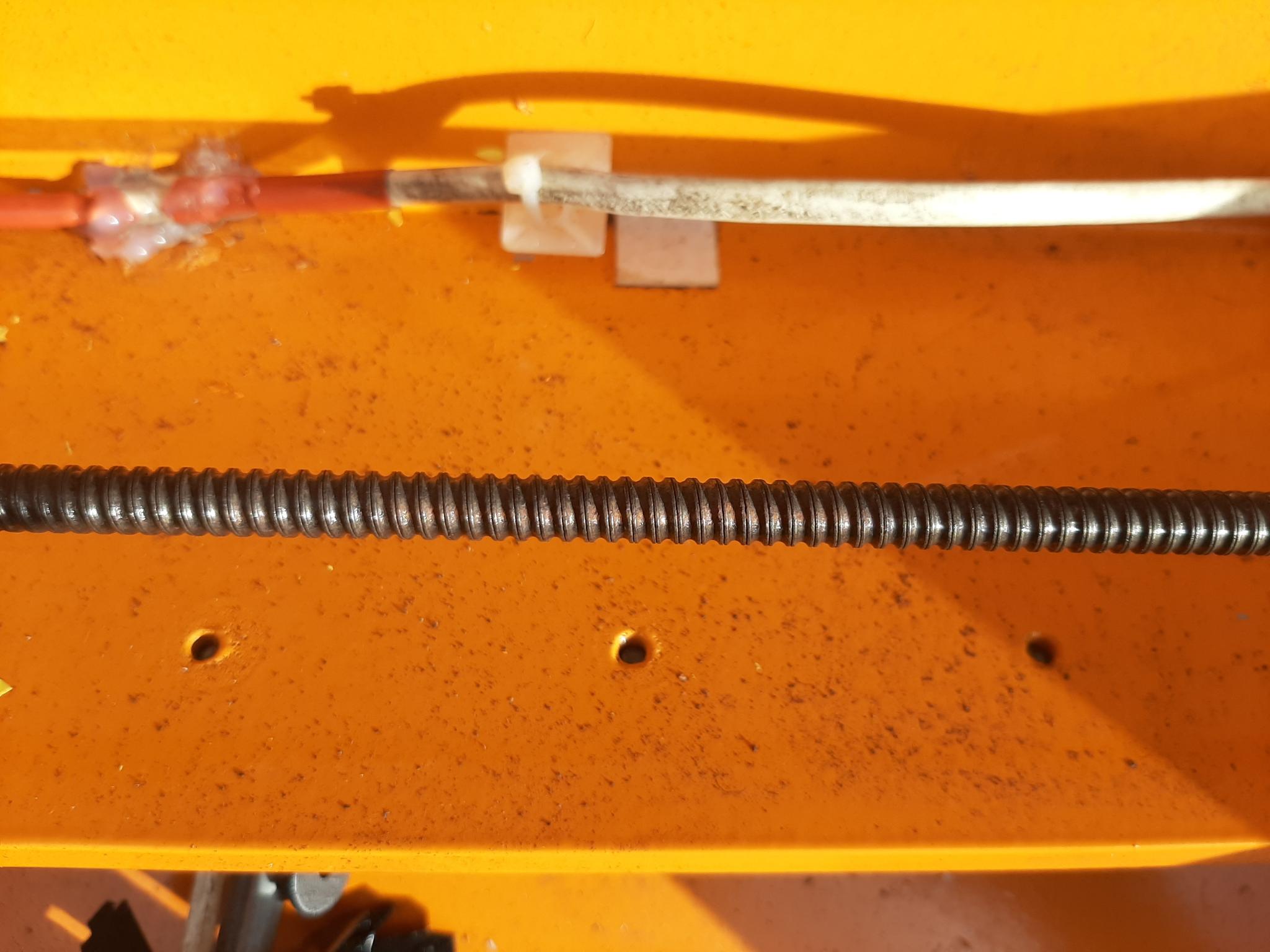 I'm attaching some photos of the gantry / Y-Axis lead screw to show how the worst part is, and the parts I have attacked with a brass wire brush on my cordless drill. A 'before-and-after' view.