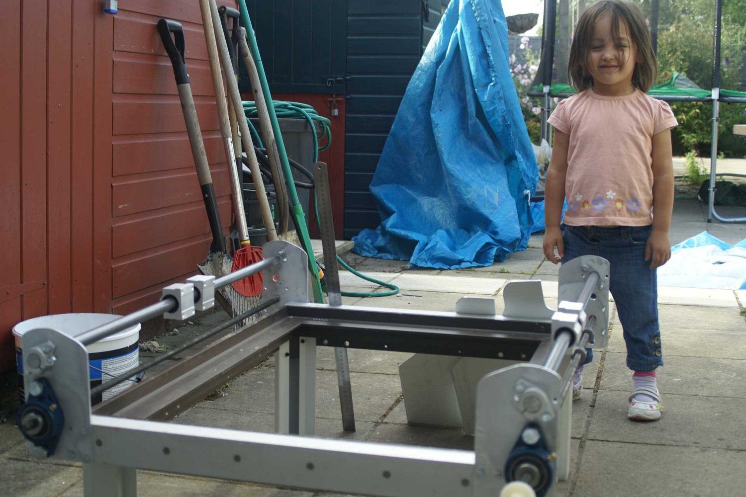 As promised - some pics of it so far and some of my favorite toys. The gantry sides for Y i cut again after doing some measuring (this helps). The best toy in the shop is the metal chop saw, it has one huge motor for a nice slow torquey cut. By the way they say never work with kids and animals.