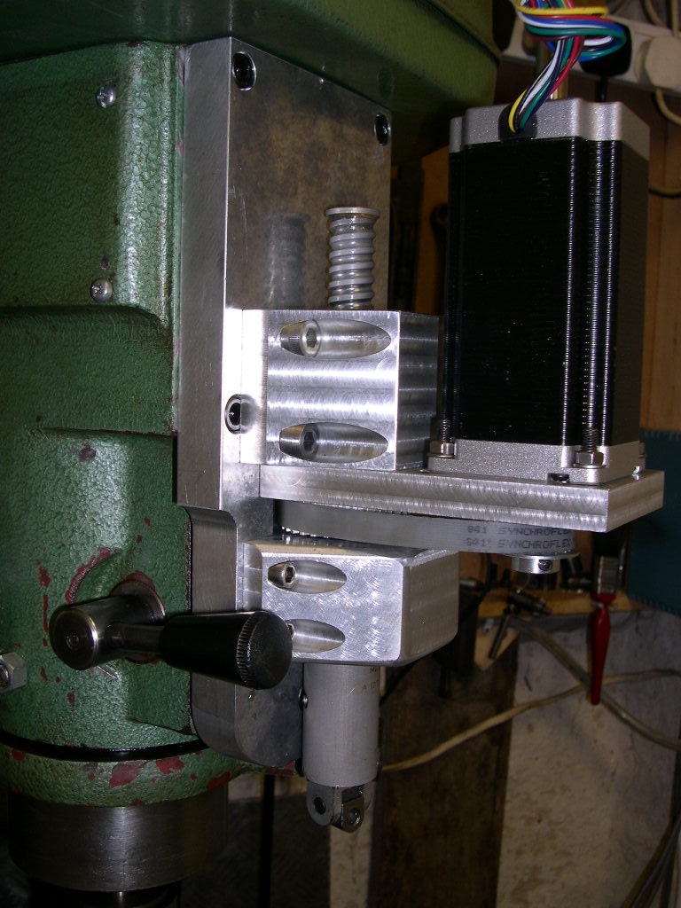Removed the depth stop from the head and mounted the assembly using the four mounting points from the name plate and an extra point on what is left of the depth stop bracket. All drilled and tapped M8.