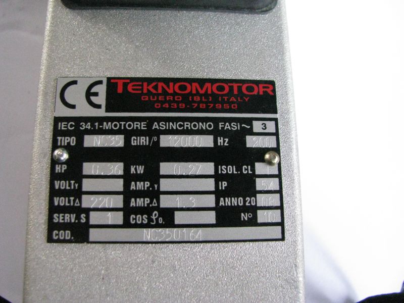 2. Teknomotor NC35 0.27kW 220V 1.3A 200Hz 12000 RPM