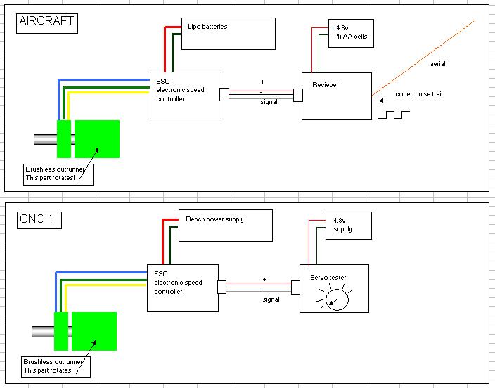 There was an article in MEW (Feb 2008 issue, No 135 ) about making outrunner motors but there wasn't much about how to power them. I'm guessing that the 'servo tester' provides a PWM pulsetrain and the speed controller (is this aka an 'ESC'?) sees the pulsetrain and uses electromagick to provide a 3-phase supply to the motor.