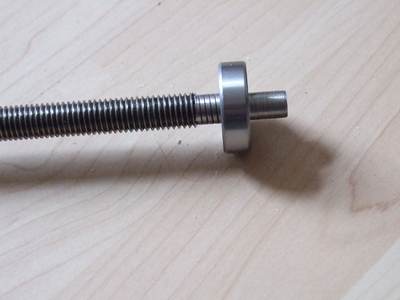 Just turned this threaded rod down from 12mm to 10mm for the bearing,chuffed I am... don't want to push it on all the way just yet as the end bit needs a screwthread on it tolockthe bearing in place,mind you it doesn't really need it as the bearing is a tight fit.