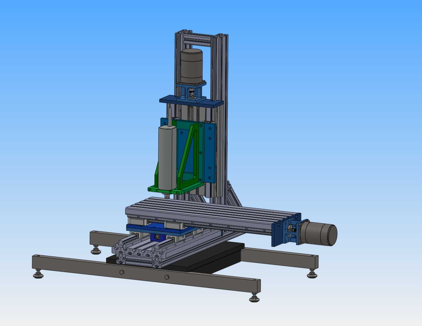Y Axis Frame legs added (Levelling feet and outriggers/stabilisers still to be fitted)