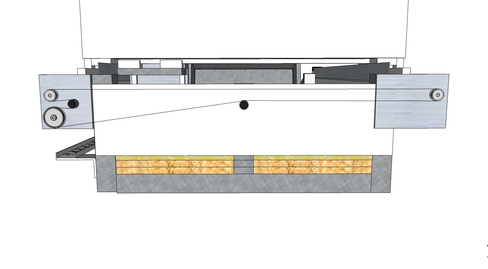 I'm not planning on being able to shove long work in and out, won't be practical anyway as I'm limited by the roof and floor as mine's almost vertical. I've just added some bracing to the legs so that's made the cutting area smaller with my previous width of Z axis....so I've narrowed it. I'm hoping that it's not too narrow, it's now 145mm wide. I'll have to check the 15mm carriages but I think they'll be ok at that width...