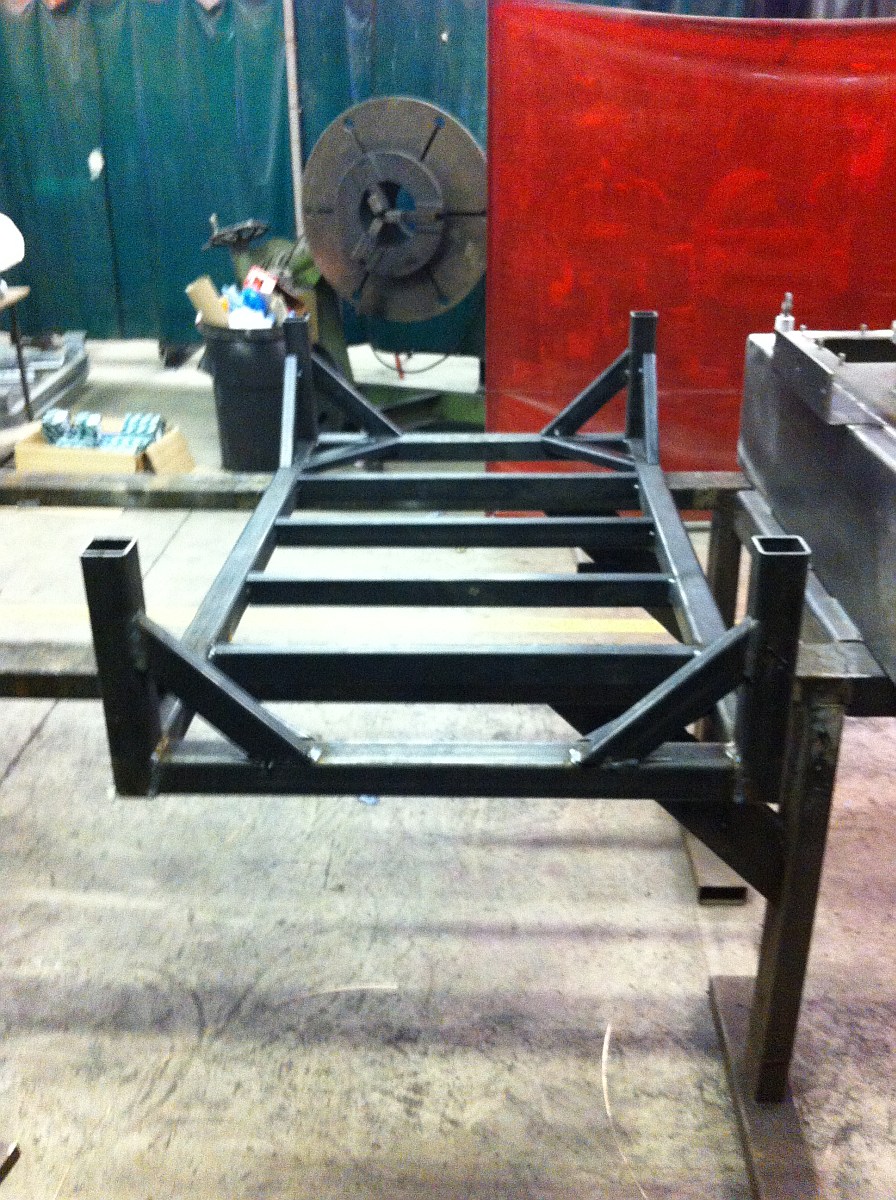 Well I finally managed to get back onto the shop floor this lunchtime and re-cut the 40° angles to 45°on the supports.....tomorrow I'm going to try to do some more tacking up...depends on if I can get anywhere to weld as the shop floor is a bit busy at the moment. Really want to crack on with this now so I can hopefully have it running before Xmas.