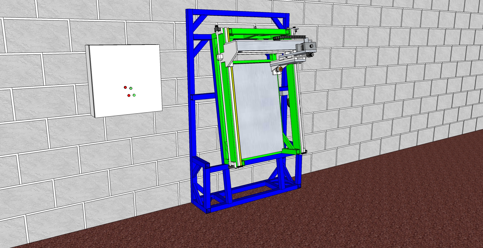 The frame is going to be mounted to the wall and floor rigidly and adjustably so it can be mounted level and slightly off the wall to get access to the botls holding the router to the frame (I can see a re-design on its way already...)