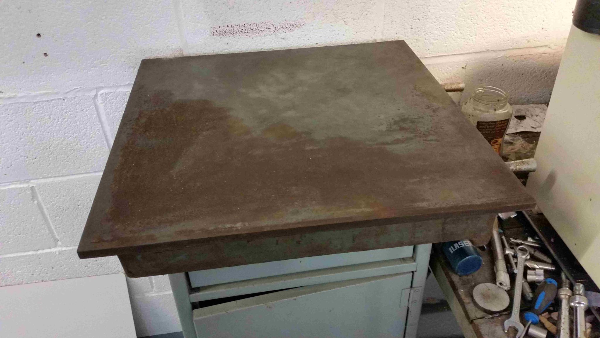 I've found an old cast iron 24" square marking out table which will come in useful although it'll need the rust cleaning off part of it...and a 24" Mitutoyo vernier caliper, there's also a Mitutoyo vernier height gauge but the scale is really rusty so you can't see the graduations. Anyone got a good way of cleaning these items so they can be used again? I don't want to take a scotch pad or anything like that to them for fear of taking off the graduations or ruining the surface (although there might be some pitting on the surface plate) if I can help it?