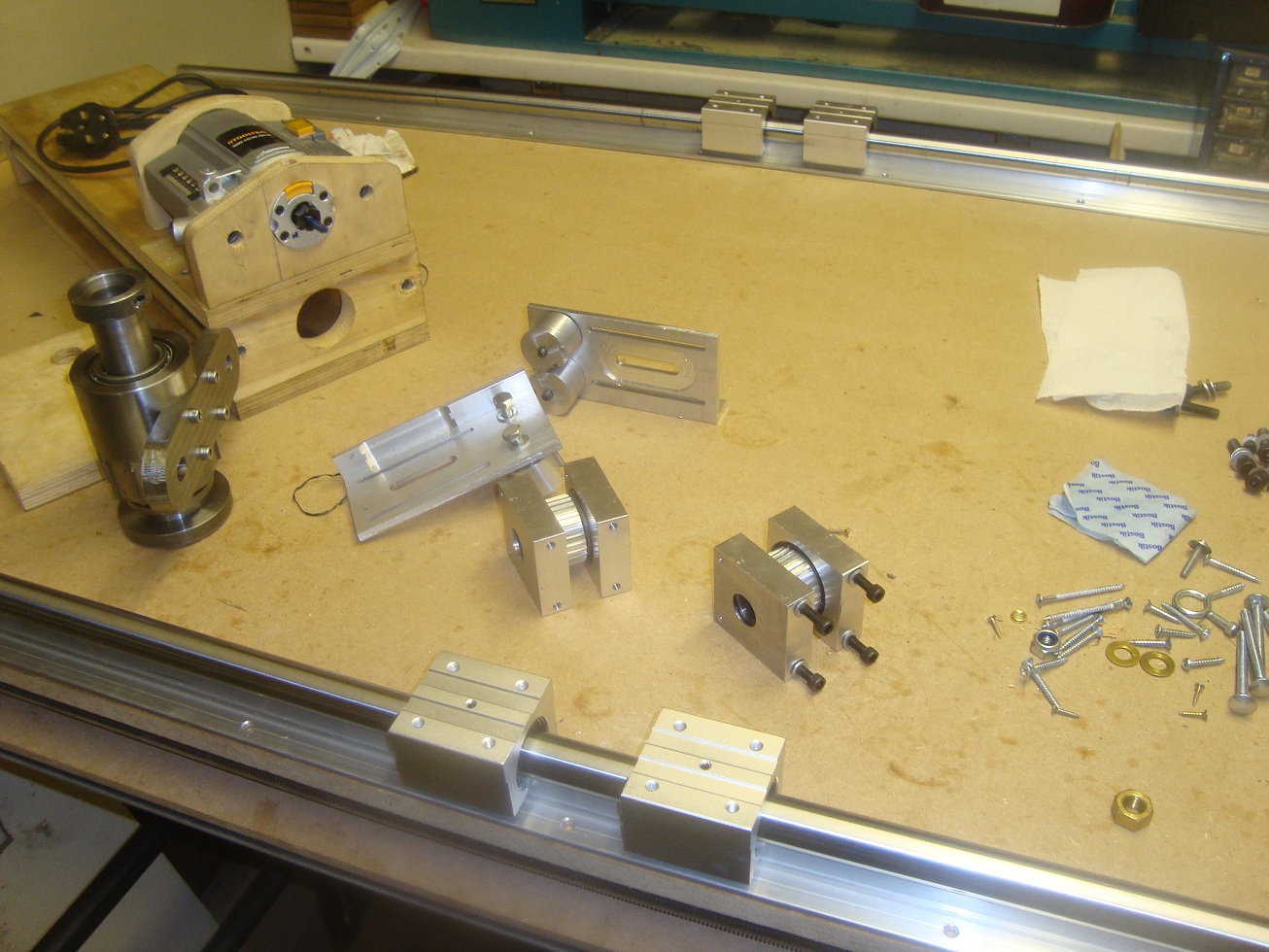 They're a pair of L 68149/L 68110 taper roller bearings. It's all mild steel - shows the dehumidifier is working as it's ages since I machined it. I'll use a stepper motor via timing belt to drive it since there's no way I could afford a servo. Also putting a disk brake using solenoids to hold it steady whilst milling. When I want to use it as a lathe I can put the big brushless motor on it. 6000rpm at several Kw would make a nice CNC lathe. I made it mainly to use with the milling machine, but I may well use it on the router.
