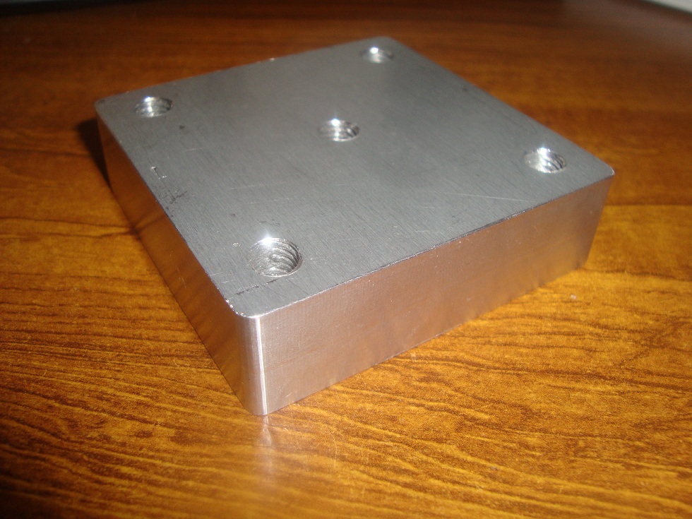 Pretty accurate too I sawed the plate to roughly 80x80mm then used a 20mm 4 flute endmill to cut it to size. I used 2mm cut depth and 1000mm/min - no problem at all! I'm sure I could have gone faster or cut deeper since it didn't get hot. I then did a single finishing pass taking off 0.2mm at full 20mm depth and 300mm/min.