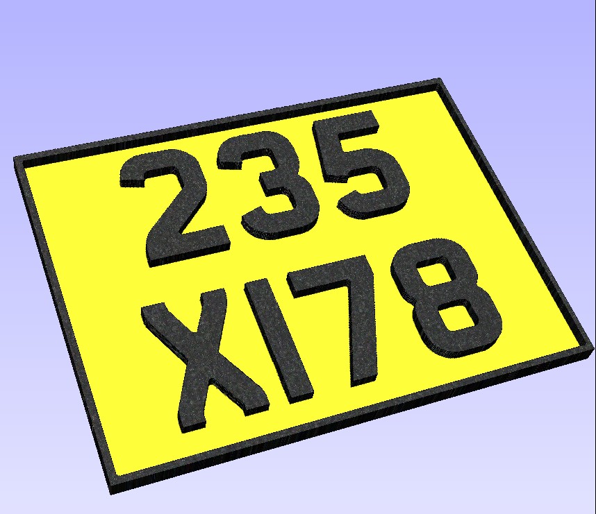 the text he was doing is a plate 235 x 178, 3 letter 63mm high on top row and four numbers on bottom row (8's appeared to be the problem)