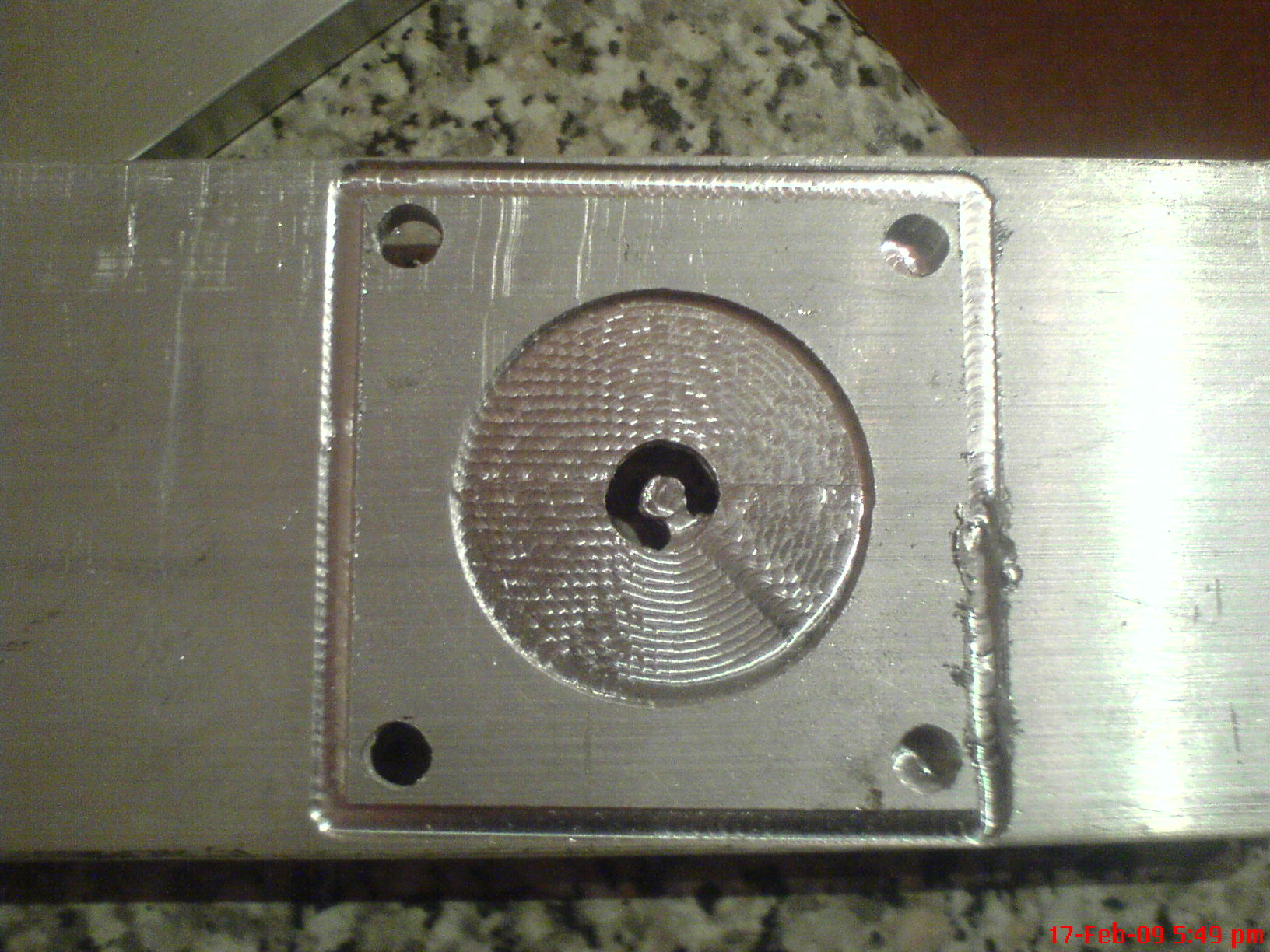 Next is my attempt at working with some Ali, apart from the obvious in the picture when the cutter got stuck it also spilt the Z Axis plate right down the middle. In the above pic I was “having a play” with the spindle speed to see what would work and what wouldn’t, when the cutter got stuck it had just gone into the next plunge, for a deeper cut and I had increased the spindle speed.