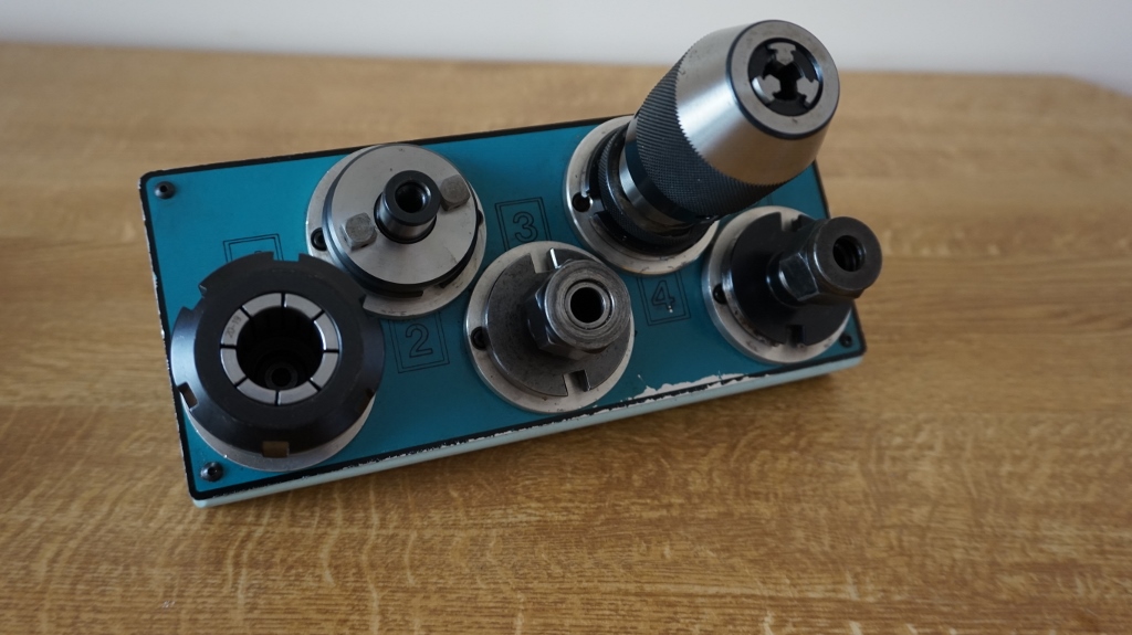 All tooling is included with the sale; 10 standard DA200 collet holders and 2 brand new Coventry tool holders (ER32 collet and 16mm Face mill holder) there is also a Jacobs’s holder with quick change chuck. There is a 5 position rack for tool holders. There is a large selection of DA200 Collets from 2mm to 10mm (30 collets in total). The standard Boxford vice has been re-ground and now works perfectly and is accurate, dowel pins have been added to make soft jaw repeats easy and there a few sets of soft-jaws which are included.