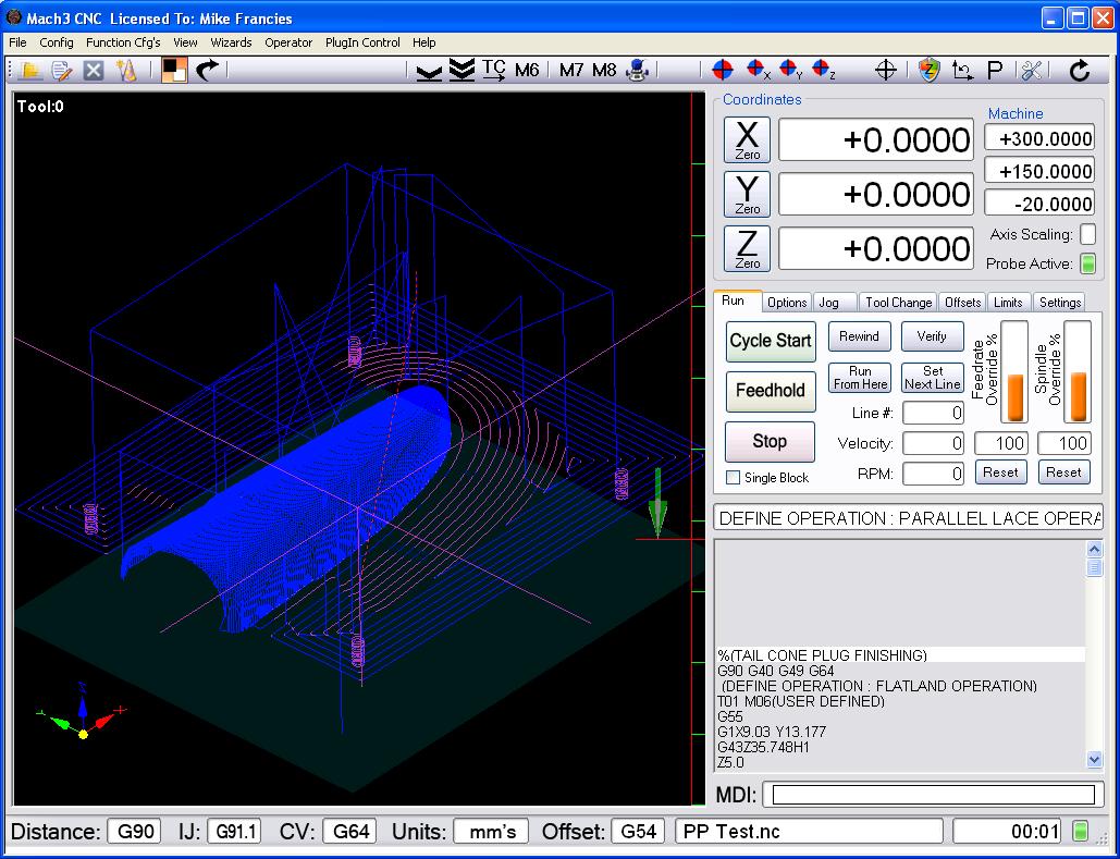 I don't know how many here use Mach3 but I would guess at quite a few. I have been beta testing a new screen set for Gerry (Ger21 for those who look in to a lot of the CNC forums) and I think it is one of the nicest, cleanest and uncluttered screen sets I have seen. It also incorporates some very nice auto zero routines and a massive toolpath window. Rather than a number of different screens, Gerry uses a number of tabs, all accessible from the main screen.