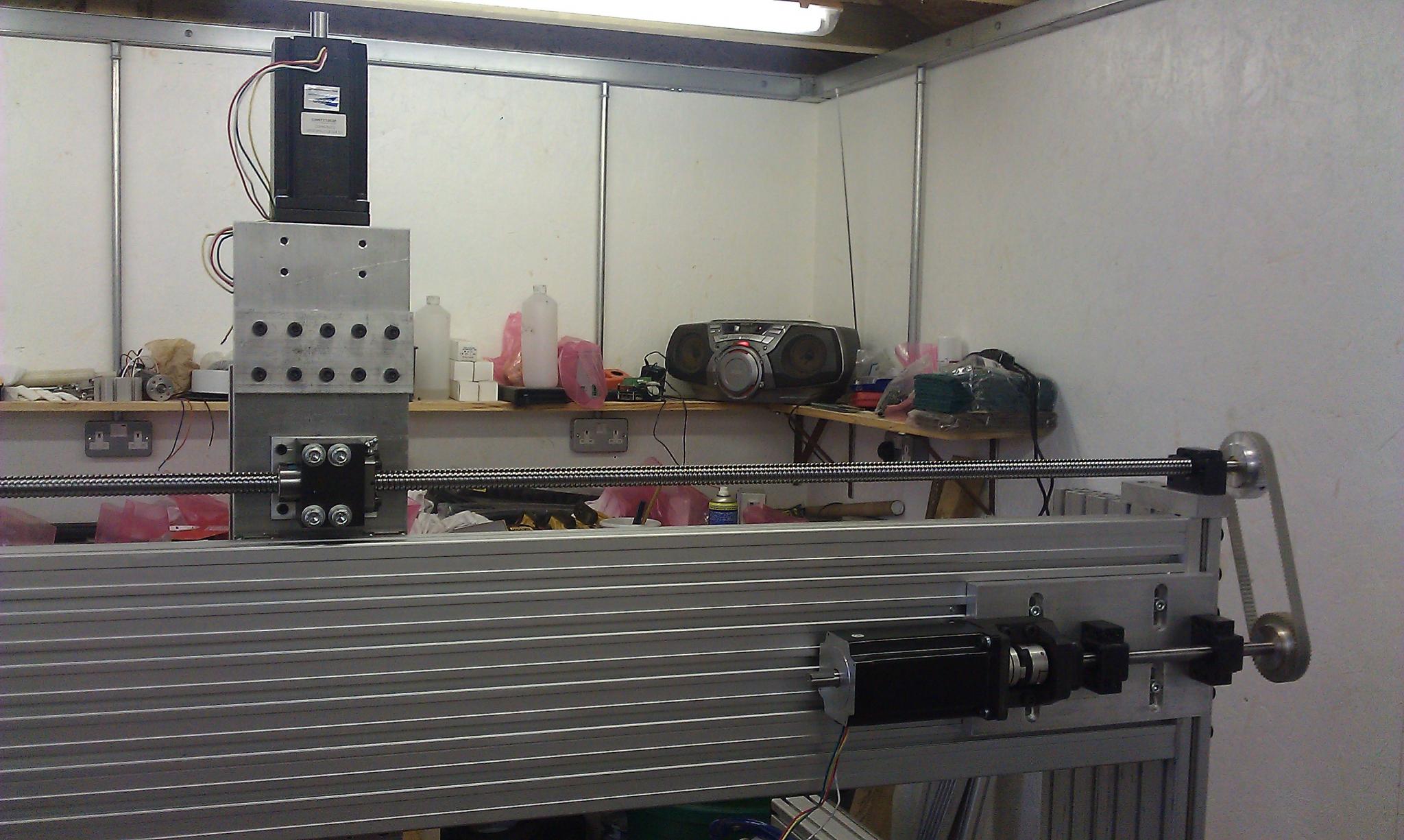 A picture of the complete motor mount. I didnt think that the shaft would travel through the bearings so I didnt fit any locking collars. I will make them and fit them on the motor side of the last BK mount before the pulley. This will stop any further movement.