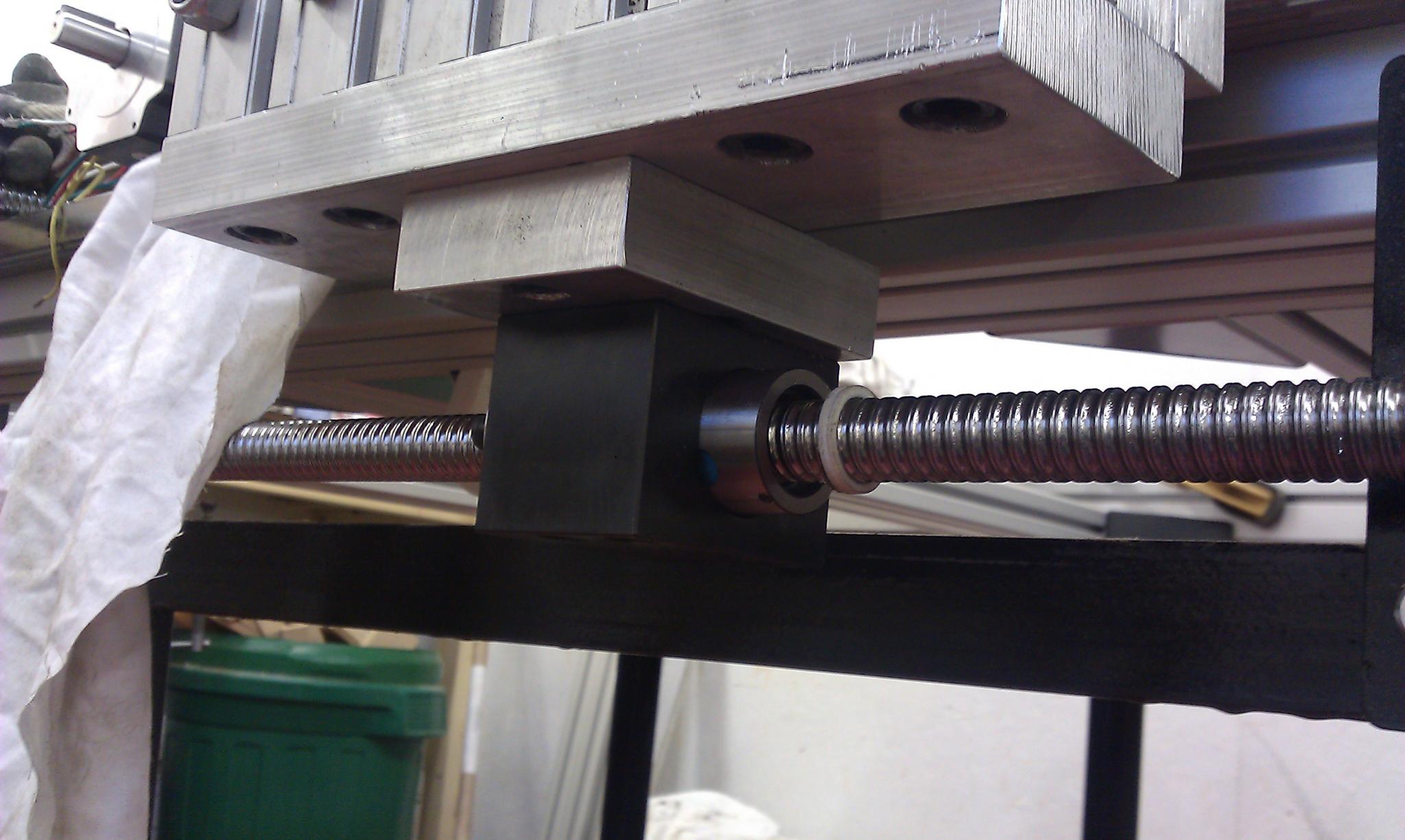 I have the ballscrew for the Y axis and have fitted the ballnut and mounting nut and the end bearings and it is just sitting on top of the frame at the moment for me to get some measurements. Next job on Monday is to mill a spacer block of aluminium 95mm x 75mm x 16mm thick to go between the ballnut mount and the Z axis frame.