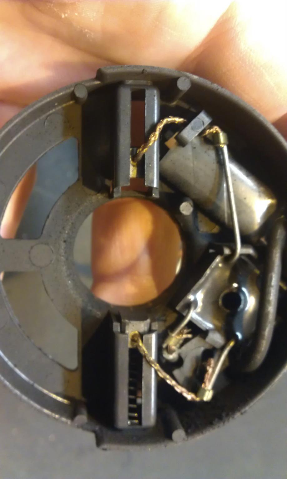 I stripped the motor down to find the brush gear had collapsed and part of the brush holder had vanished.