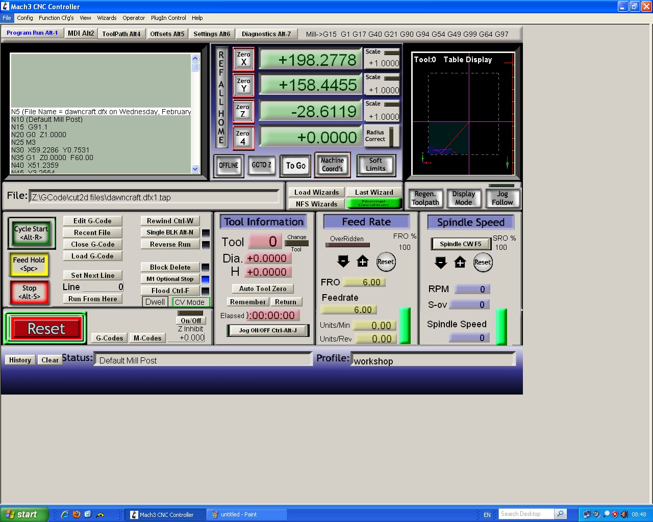 workshop one running XP Intel 3000, 4 GIG RAM,