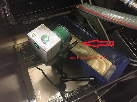 You could put some hose at the the end of that drainage to direct the oil to the tube.