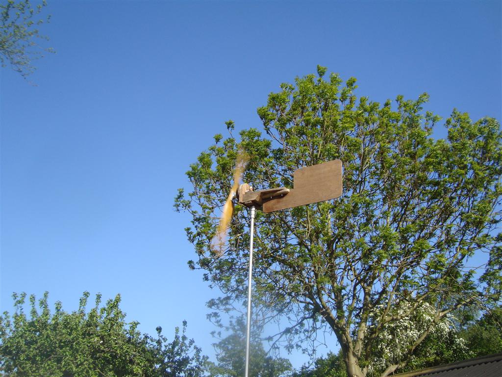According to the frequency meter the rotor did over 800rpm at times - that means the tips of the blades were doing over 100mph! I need to be careful... next time I'm going to balance them properly and stiffen the tower up. Might have to use guy wires at full height.