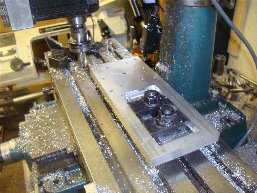 I have at last started making the rotating ballnut assembly. I've started with one stepper motor mount, it's 100x245mm: