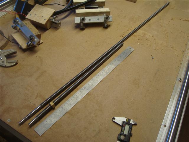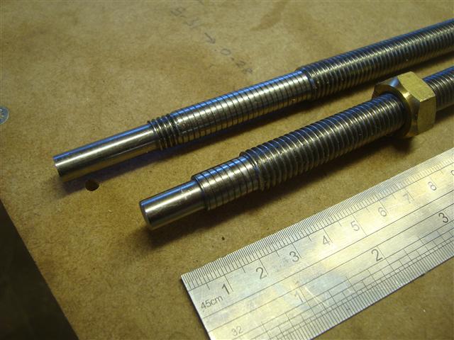 Two M12 stainless threaded rods with ends accurately machined to fit bearings..