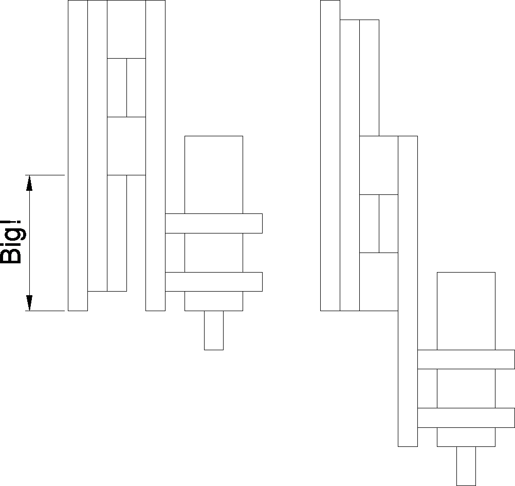 Chip did it like in the first drawing and unfortunately found out the hard way when he tried to cut aluminium. I started by drawing the same on my Z-axis (400mm travel), but fortunately someone pointed it out so I changed it.Last edited by Jonathan; 10-01-2012 at 08:28 PM.