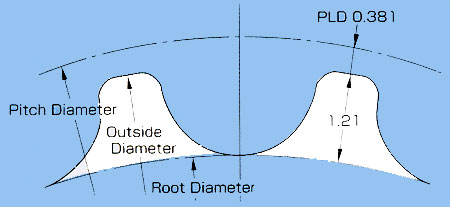 pulleys PCD radius - 0.381mm gives you pulley radius.
