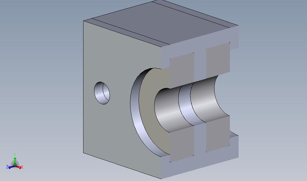 Edited to add: and again with the fast reply! The single hole on one side was the original design idea, just like the other blocks I'd seen. The reason for trying to a different approach was because I thought they were using standard radial bearing in the block and thrust bearings on either side, and using the angular bearings would benefit from a different approach. Clearly not!