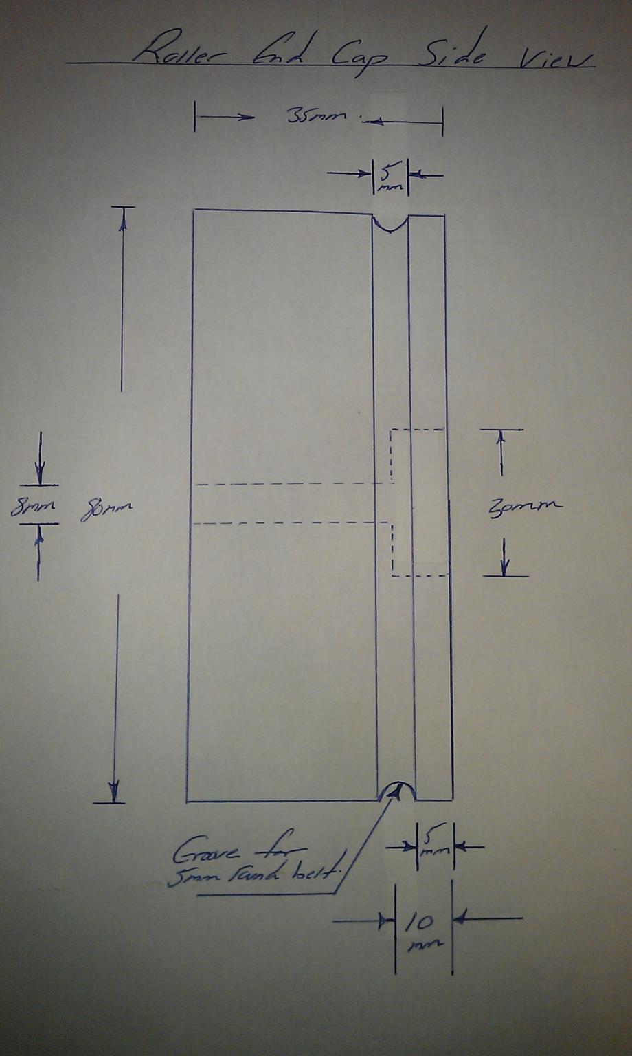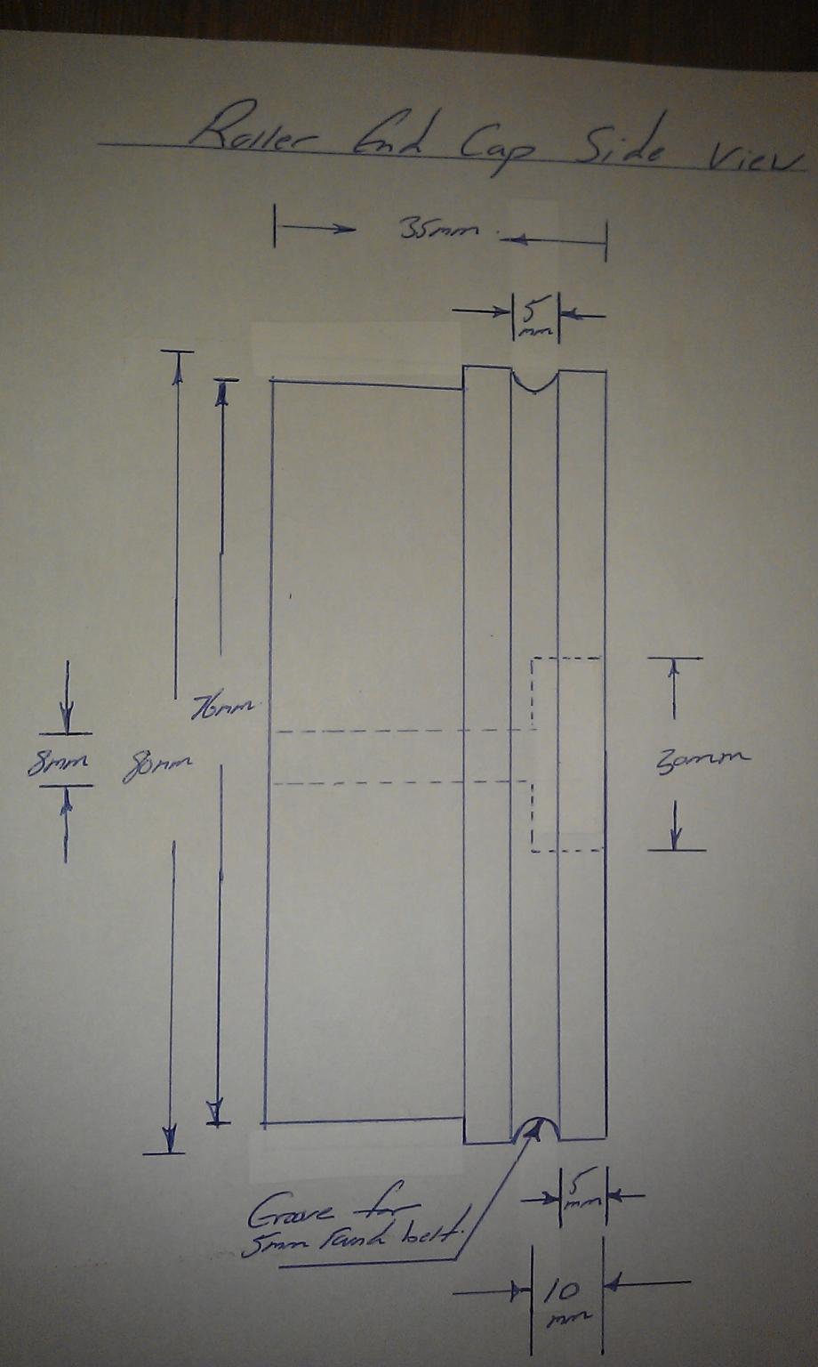 The diameter of the roller is 80mm. The wall thickness is 2mm. All I need is the rod machined to fit in the roller (like a cap) and a grove machined for a belt. Also needs to have a centre hole drilled of 8mm and bigger diameter hole part way through for a bearing. Hope that all makes sence!:confused: