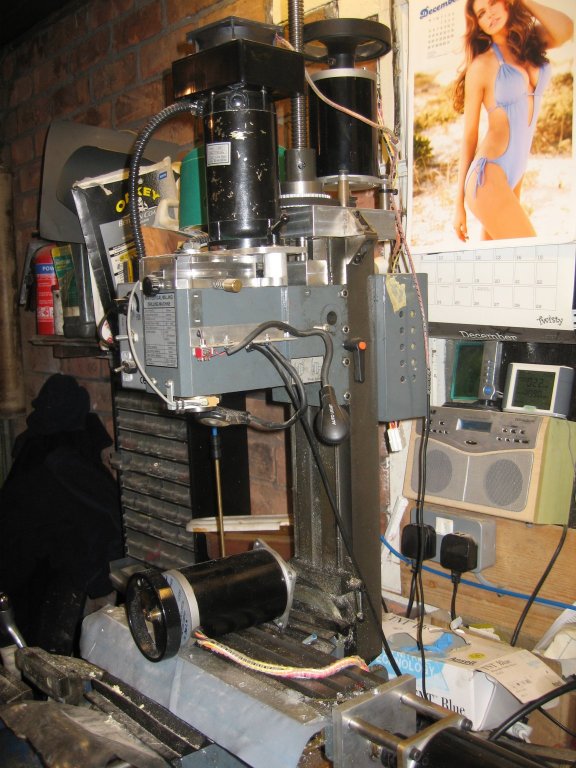 CNC conversion completed. Nook 5/8" dia. x 0.2" ball screws on X and Y. SKF (ebay) 5 x 20mm ball screw on Z. Home made Z mount with belt reduction and two thrust bearings mounted in 30mm aluminium block. Little Machine Shop belt drive conversion. Small damage to table (see picture). Instruction manual and bits removed during conversion included.